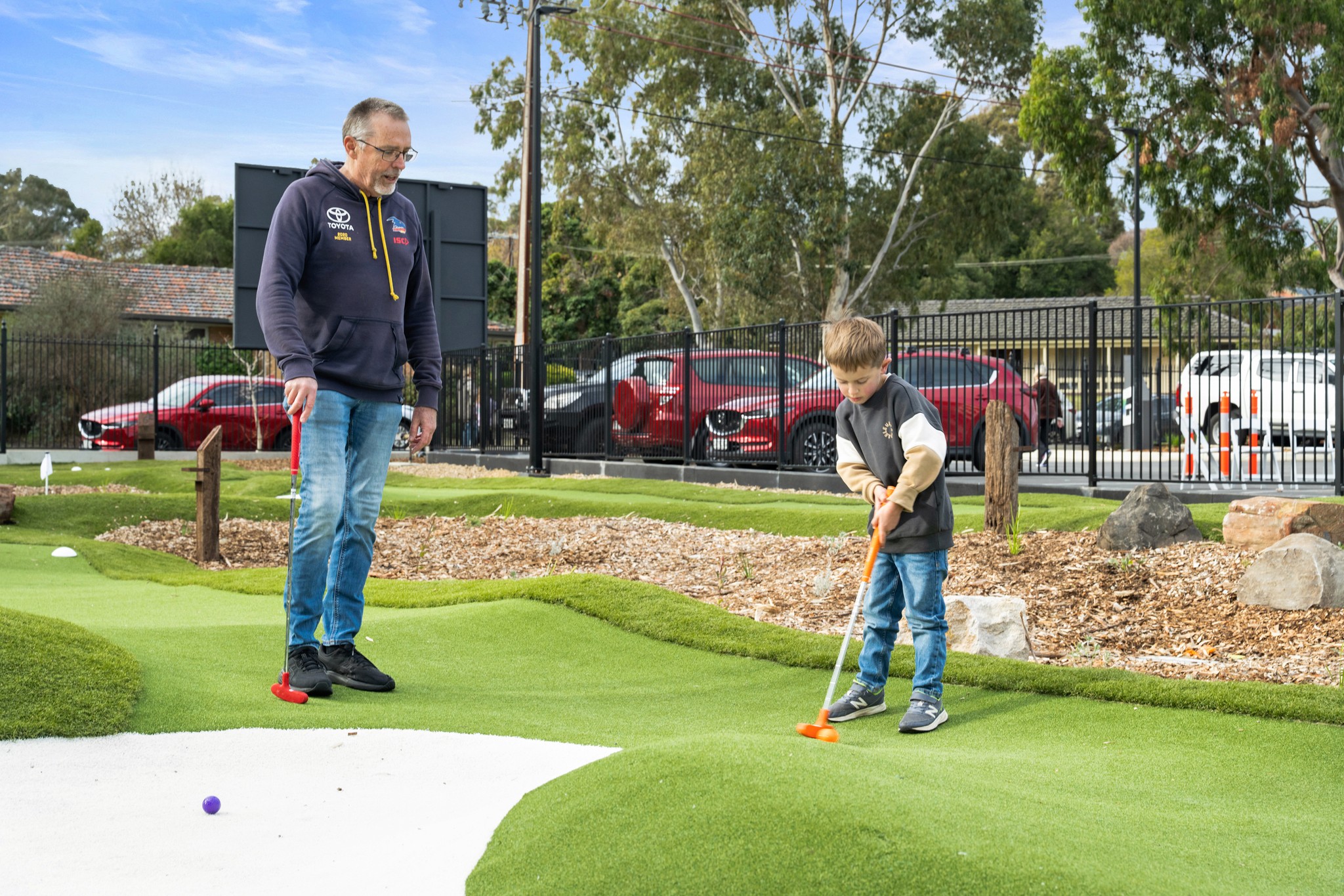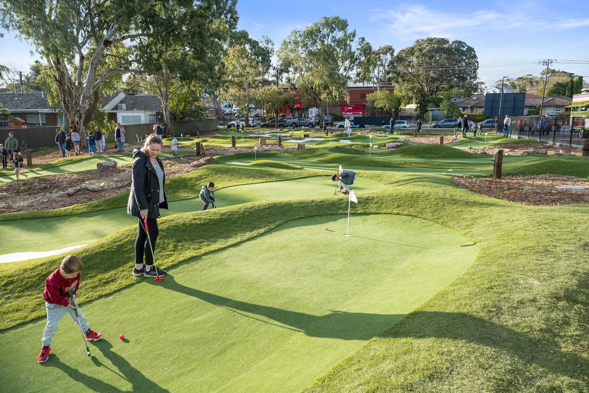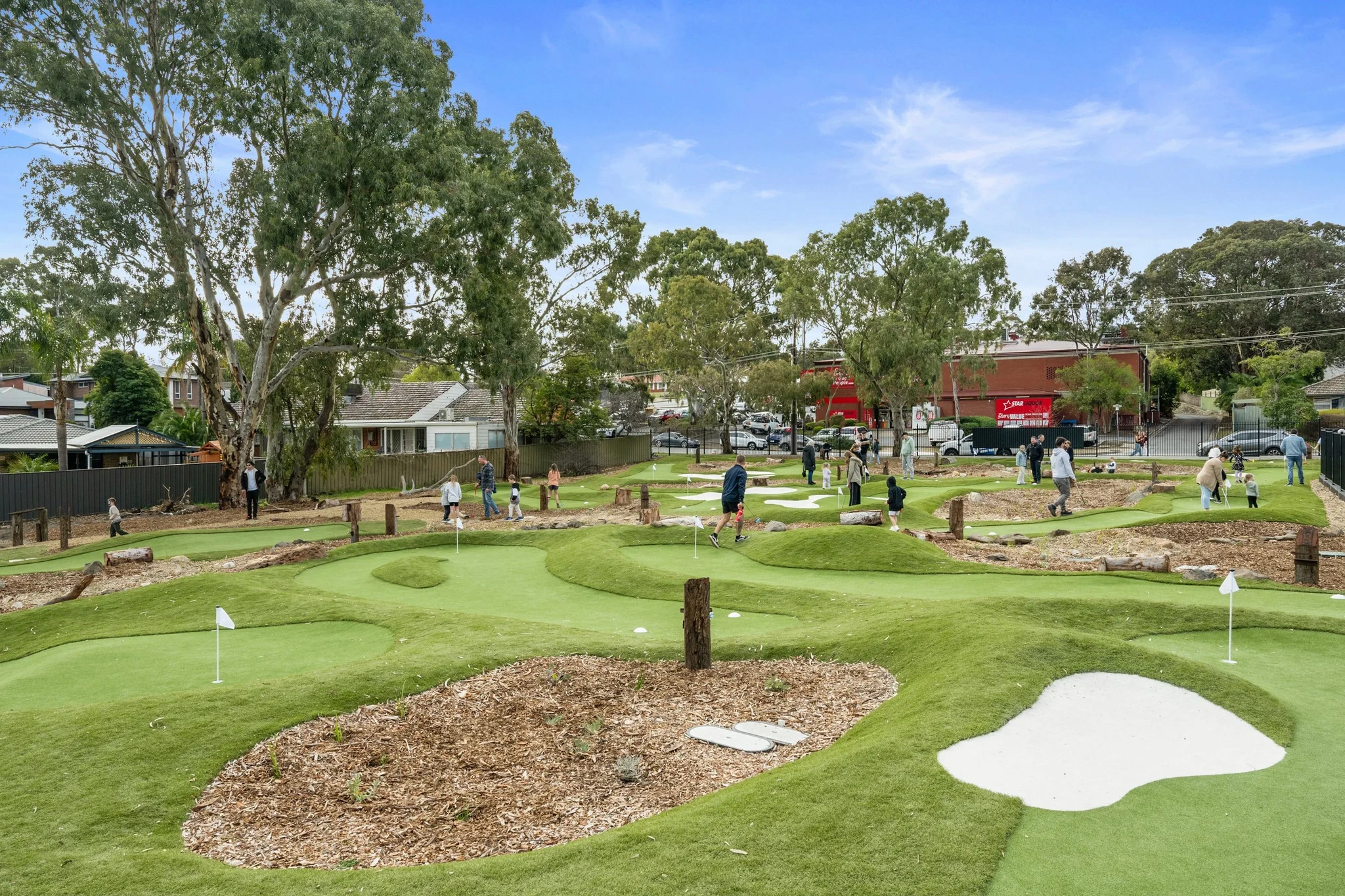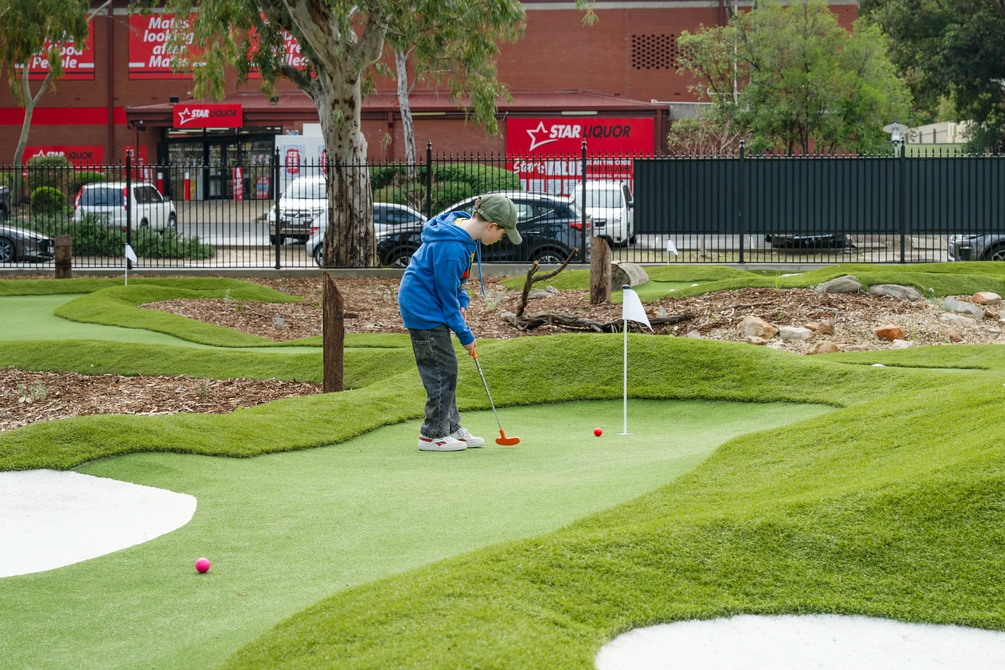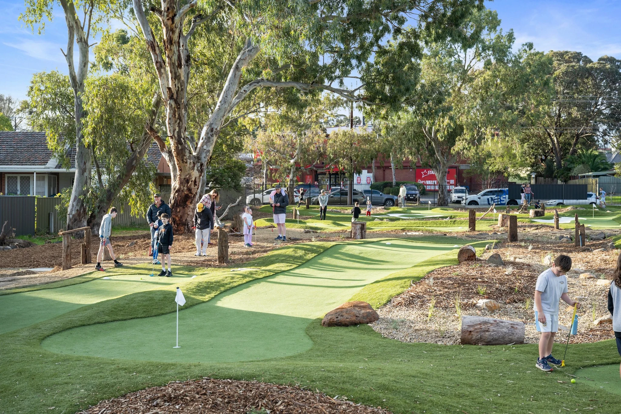 The putting course includes landscaping and water features and pay homage to the existing golf course at Flagstaff Hill Golf Club, with the 7th hole mimicking the signature 7th hole on the golf course.