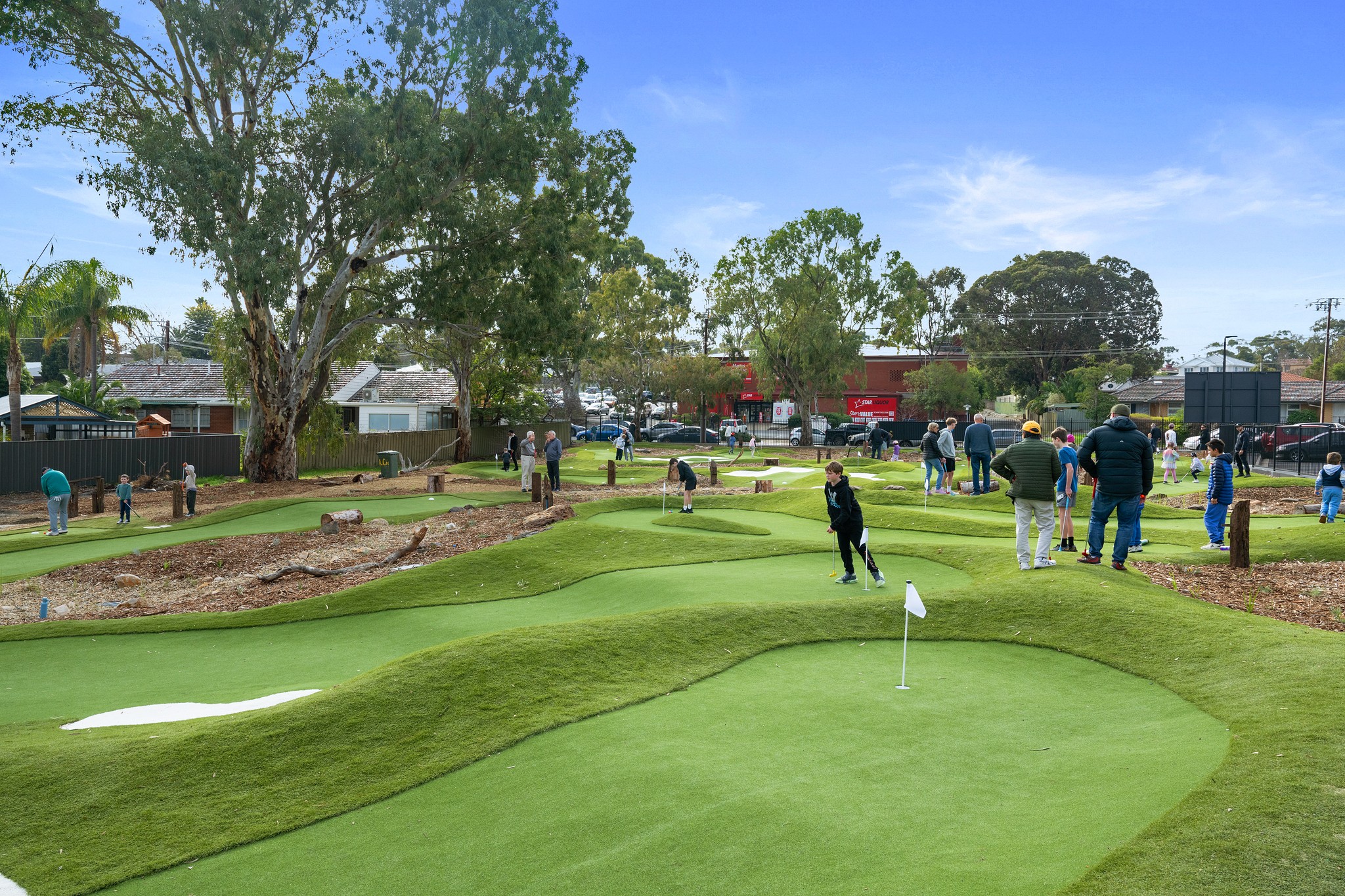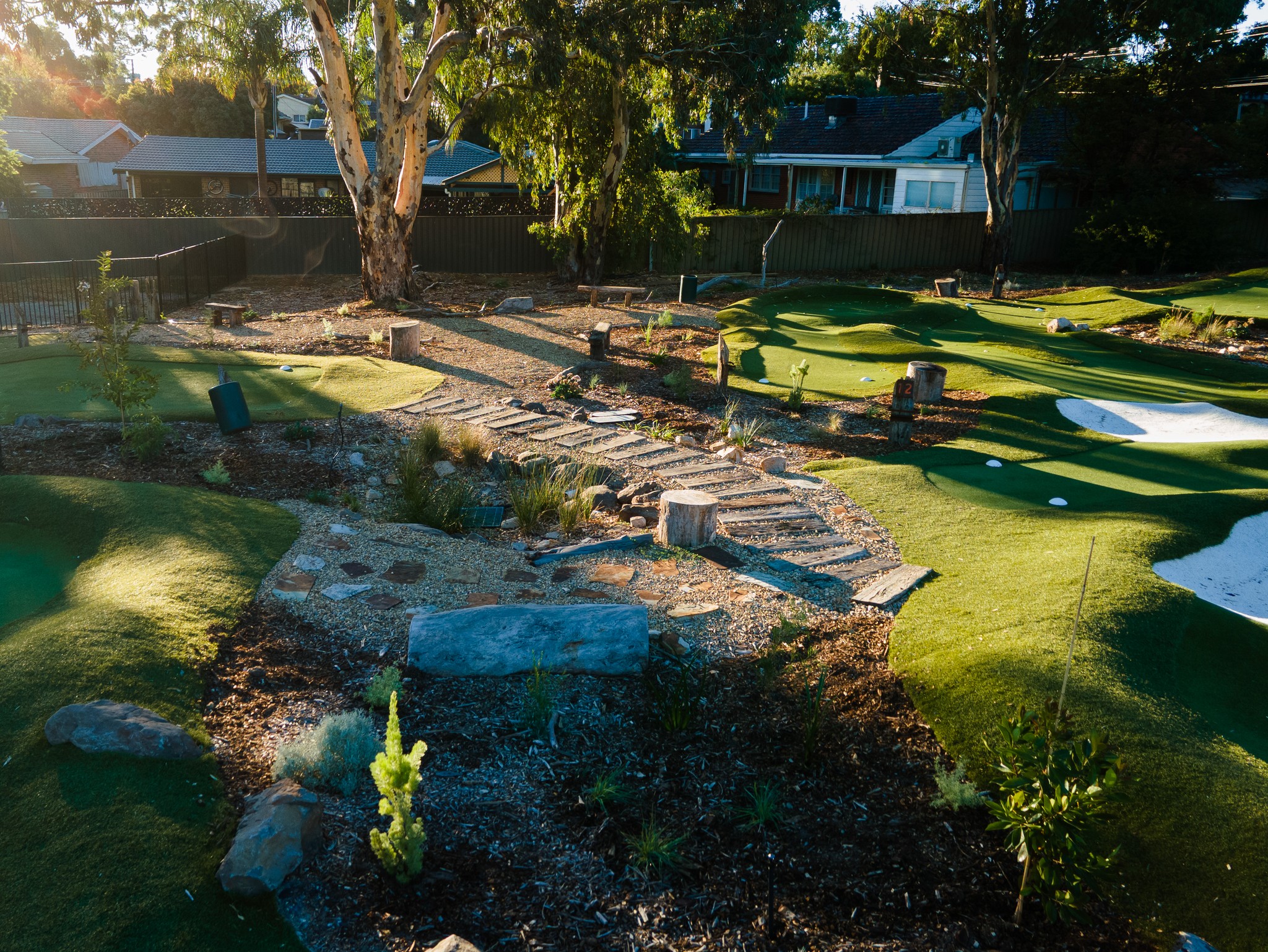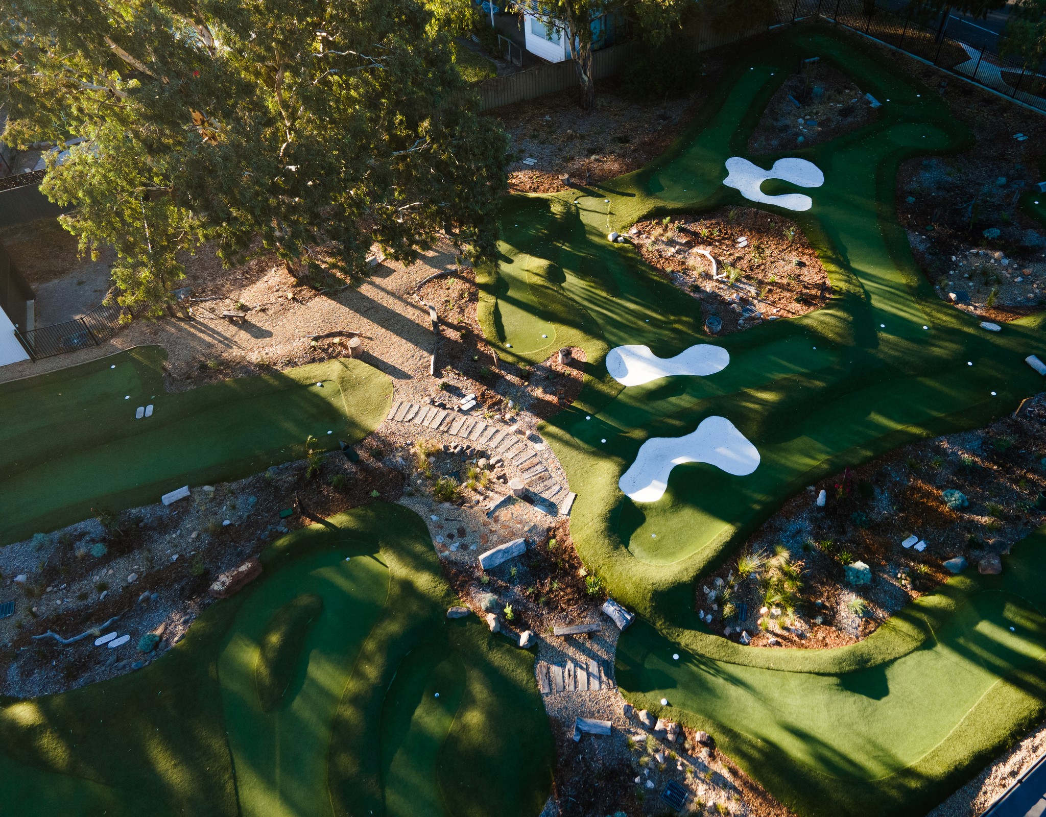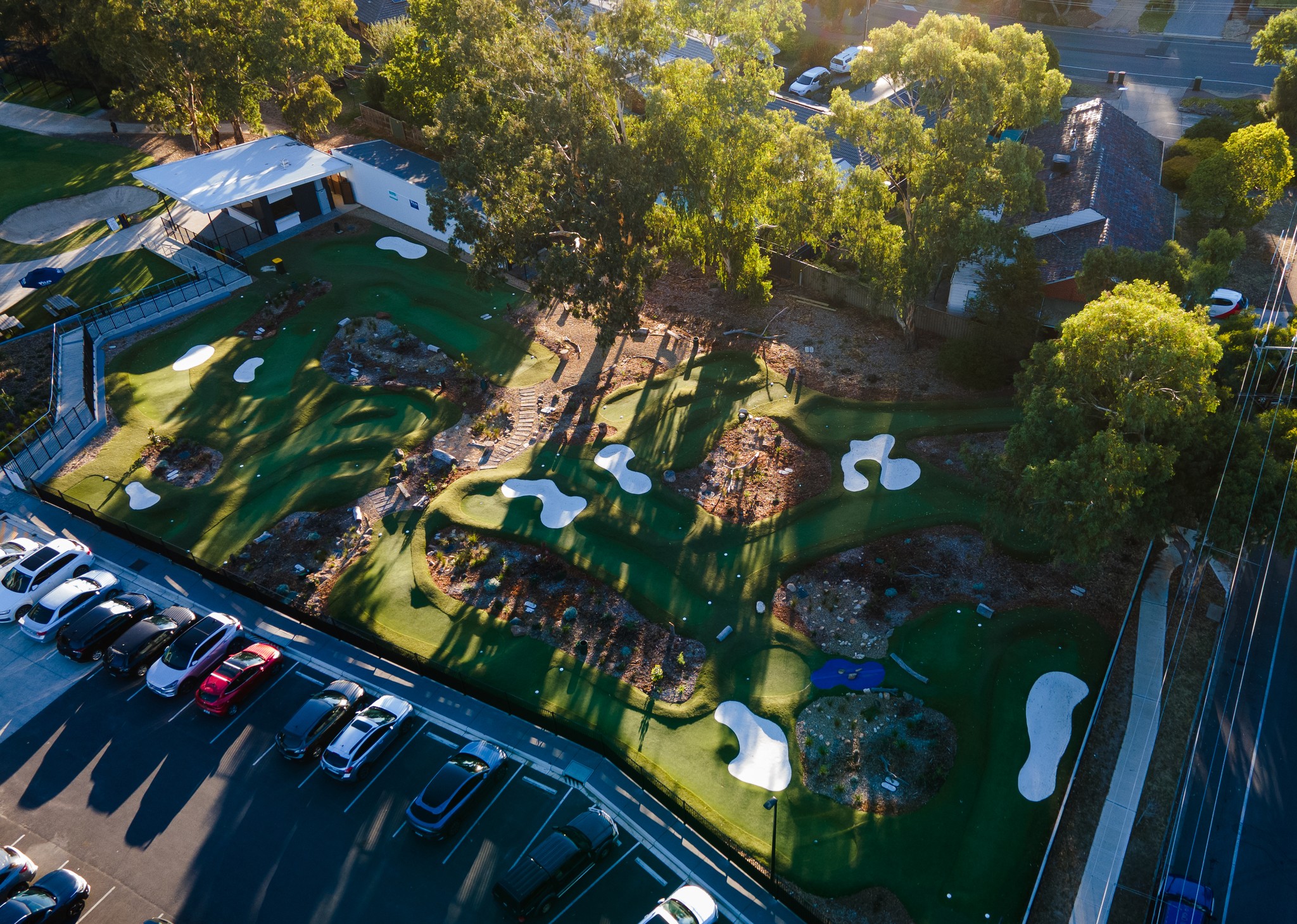 Tucked away in the scenic suburb of Flagstaff Hill in Adelaide, Australia, this 3252 SQM // 35,000 SQFT putting course is the first of its kind in South Australia. Designed to flow seamlessly with the natural contours of the land, the holes wind up and down the varied terrain, ranging in length from 30 to 100 feet. The layout features returning nines, numerous bunkers and several holes thoughtfully inspired by those found on the full-scale golf course.