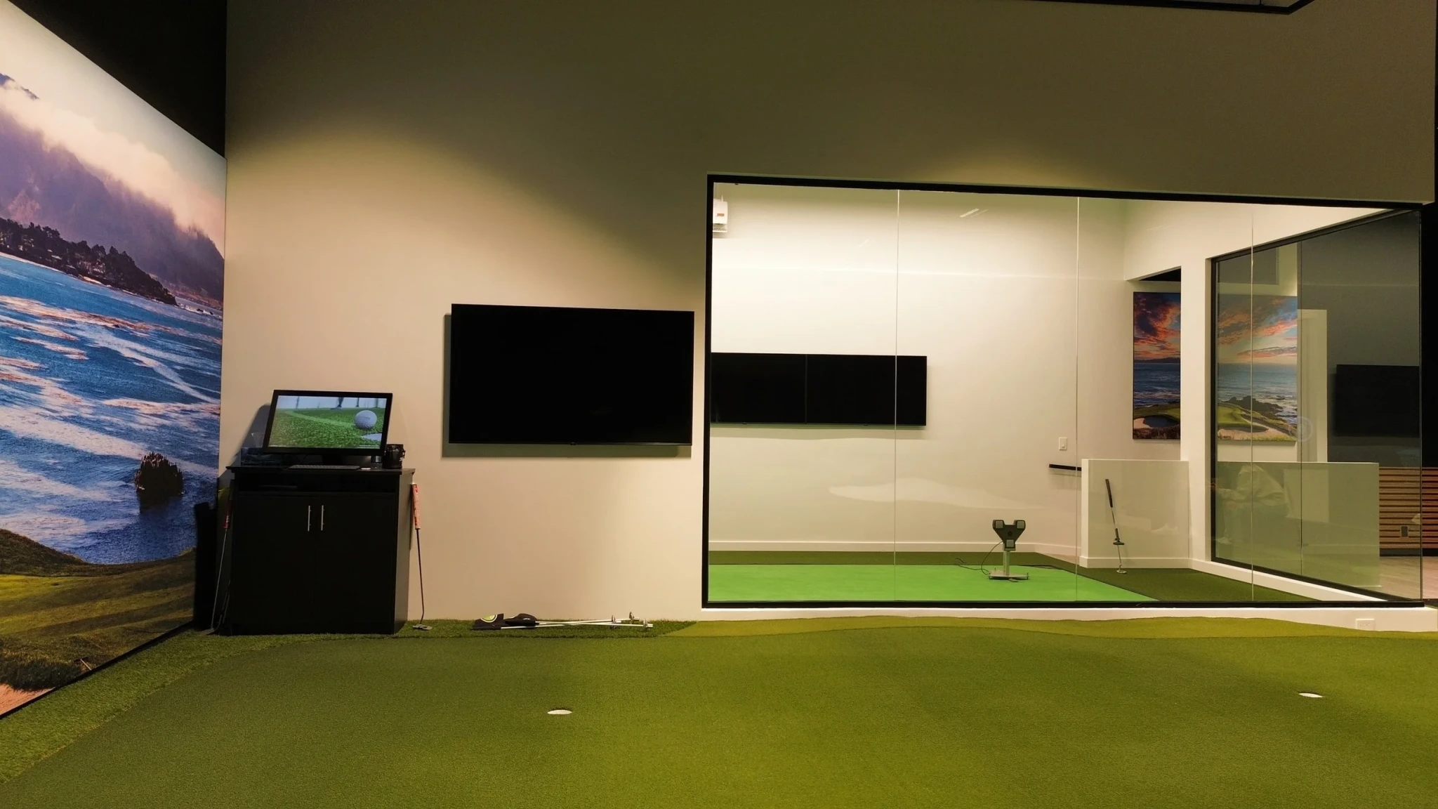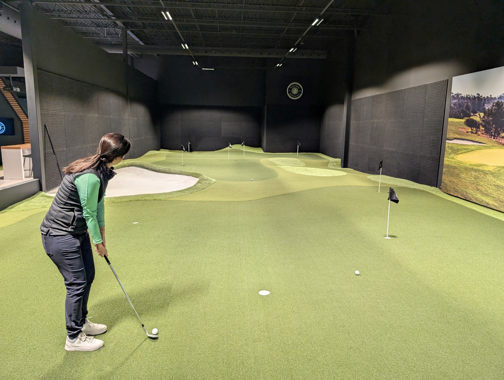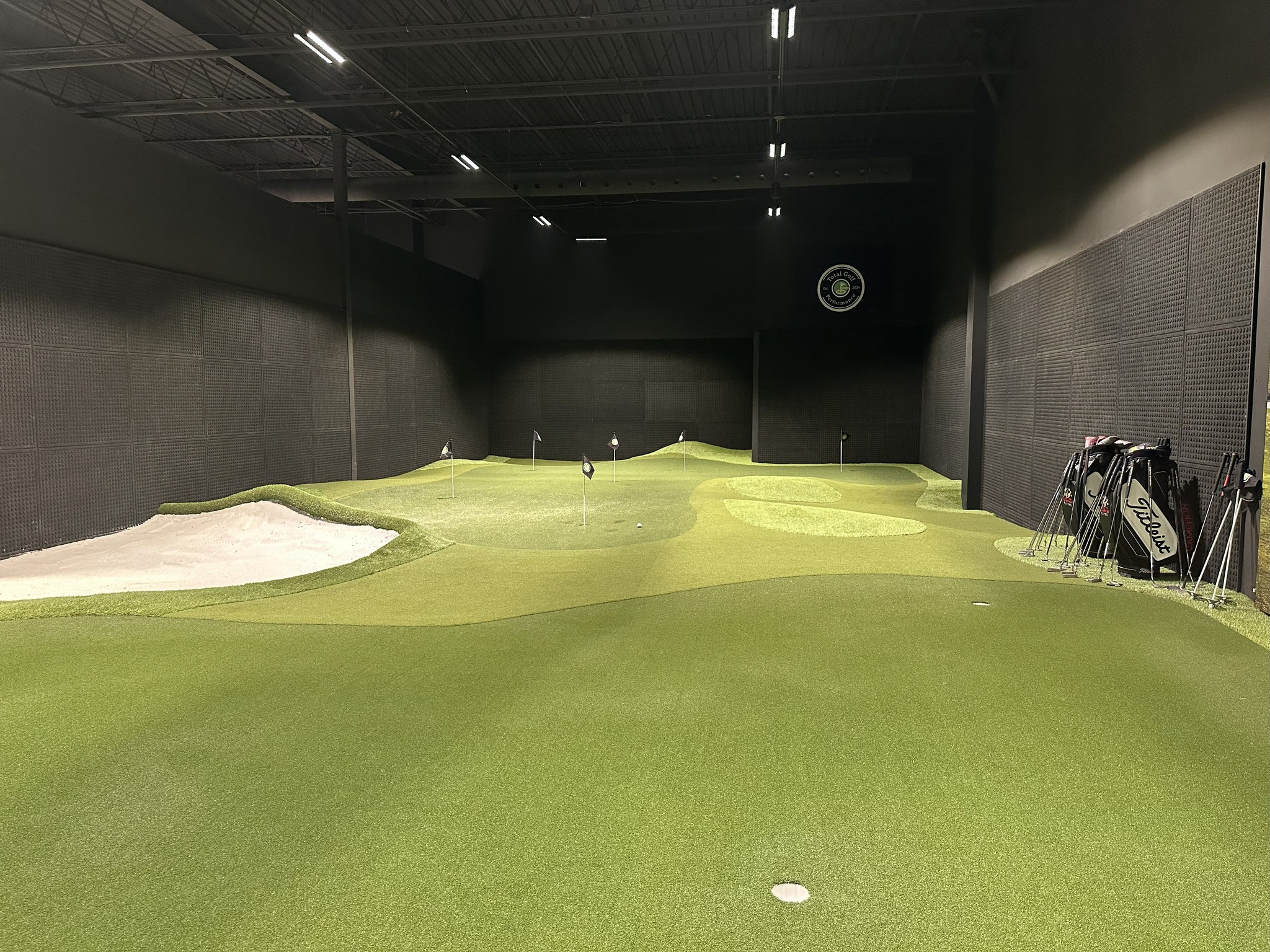Featured technology includes Foresight, Trackman, PuttView, Zen Green Stage, SAM PuttLab, Swing Catalyst.